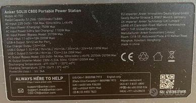 Vendo Anker SOLIX C800 con pannello solare pieghevole Anker SOLIX PS100 (100 W) e accessori. Ideale per campeggio, outdoor o come soluzione di emergenza. Condizioni: come nuova, caricata solo 3 volte.