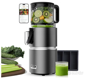 Anybear Estrattore frutta e verdura a Freddo con tramoggia larga 124 mm | Estrattore di succo 350W con Doppia Tecnologia di Spremitura Lenta per frutta e verdura intera | Tritan Senza BPA (Grigio US) Anybear Cold Press Juicer with 4.9" Large Feed Chute, 350W Masticating Juicer Machines with Dual Slow-Squeezing Technology for Whole Fruits & Veggies with High Yield | BPA-Free Tritan (Grey) Innovativa estrazione a doppia fase: il nostro spremiagrumi a freddo presenta una struttura a vite aggiornata che utilizza un processo di spremitura doppia. Attraverso due distinte fasi di spremitura, massimizza l'estrazione del succo da frutta e verdura mantenendo temperature costantemente basse. Può preservare efficacemente il 100% di vitamine, antiossidanti ed enzimi naturali, garantendo che i nutrienti rimangano intatti senza degradazione termica. Questo design non solo migliora l'efficienza, ma riduce anche al minimo l'ossidazione, offrendo freschezza e sapore senza precedenti ad ogni sorso. Motore potente da 350 W con alta coppia da 230 Nm: il potente motore da 350 W dello spremiagrumi con un'alta coppia di 230 Nm separa rapidamente la polpa dal succo con minimo sforzo, offrendo un gusto più puro e una maggiore resa di succo.' Elabora senza sforzo ingredienti duri come erba di grano, sedano e zenzero, mentre le parti rimovibili garantiscono una rapida pulizia. Imbuto di alimentazione largo 12,4 cm: Spremi agrumi interi con lo spremiagrumi Anybear a fredda pressione in pochi secondi — niente taglio! Riduci i tempi di preparazione del 70%! Getta mele intere, carote e verdure a foglia direttamente nell'imbuto extra-largo. Conserva il 15% in più di nutrienti rispetto ai prodotti pretagliati. Materiale Tritan per uso alimentare per bambini: realizzato con Tritan privo di BPA, sicuro per i bambini importato dagli Stati Uniti, il tubo di alimentazione dello spremiagrumi lento Anybear blocca il sap