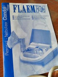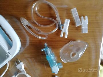 Apparecchio x aerosol terapia, funzionante, circuito pneumatico e accessori anallergici, nebulizza 0,42 ml/min (1 ml in 2,5 minuti). 230V-50Hz, silenzioso, nebulizzatore a doppio flusso, filtro professionale intercambiabile, comodo vano raccogli cavo.