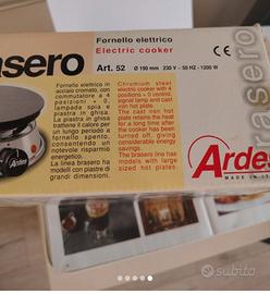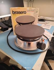 Piccolo elettrodomestico portatile ideale per cucinare in spazi ridotti o in viaggio. Come nuovo. Ma doppio. Funzionante. È dotato di una piastra in ghisa da 190 mm che trattiene il calore e di un corpo in acciaio cromato.