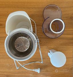 -Centrika è una centrifuga compatta e dalle finiture di metallo. Con i suoi 700 watt permette di ottenere centrifugati di frutta e verdura in pochi minuti. Il "Camino Mela" da 75mm permette di inserire gli alimenti senza grande fatica. Grazie al beccuccio dosatore con salvagoccia il succo si versa direttamente nel bicchiere.