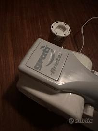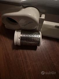 Vendo Ariete Grattugia Elettrica Grati praticamente mai usata, in perfette condizioni Unica cosa da segnalare il pezzo di plastica per tenere premuto il pezzo da grattugiare si è rotto alla base ma si può usare ugualmente tenendolo premuto
