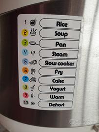 Tanti strumenti di cottura: padella elettrica, friggitrice, vaporiera, yogurtiera, forno. Display LCD