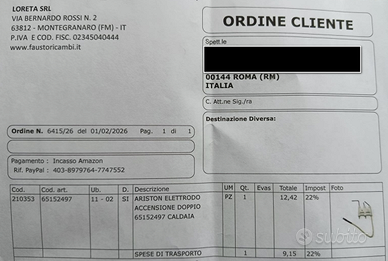 Le info sopra le ho prese dal sito di amazon dove l'ho comprato. Per cercare l'articolo sul sito di amaz0n e' sufficiente cercare le seguenti parole: ARISTON-ELETTRODO-ACCENSIONE-65152497-CALDAIA