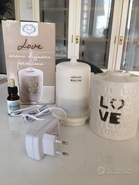 AROMATERAPIA Vivi l'esperienza dell'aromaterapia con questo piccolo ed elegante dispositivo totalmente sicuro perché privo di elementi che generano calore. L'avanzata ultrasonica produce vibrazioni ad alta frequenza che trasformano l'acqua in nebbia creando un'atmosfera calmante e terapeutica.
