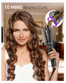 arricciacapelli automatico di alta gamma con rotolo da 25mm crea ricci perfetti e uniformi con un semplice gesto. Ideale per chi cerca uno styling quotidiano rapido e senza sforzo, anche per le principianti. Regola facilmente la temperatura tra 150°C e 220°C. Questa piastra per ricci professionale si adatta a tutti i tipi di capelli, dai più fini e delicati ai più spessi e resistenti, garantendo uno styling sicuro ed efficace. La tecnologia anti-scaldatura integrata protegge mani, viso e collo durante l'uso. Goditi una messa in piega sicura e tranquilla con questo ferro arricciacapelli automatico pensato per il benessere dei tuoi capelli.