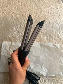 Piastre in ceramica. Perfetta per doppio uso: sia come piastra per capelli lisci sia per creare dei boccoli/ onde morbide. 3 temperature 160-180-200 gradi. Possibilità di attivare o disattivare la ventola di aria fredda. Praticamente nuovo. Non c’è il tappetino termo resistente.