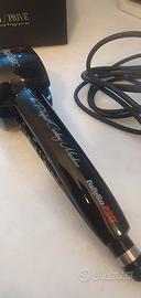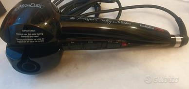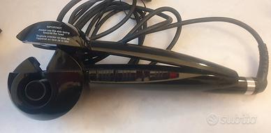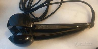 Arricciacapelli automatico Miracurl Babyliss PRO nero con cilindro in ceramica. Dotato di strumento per pulizia del cilindro. 3 impostazioni del tempo di posa (8, 10 e 12 secondi) con segnale acustico. Tre modalità di arricciatura, verso destra, sinistra e automatico per un risultato più naturale. Cavo girevole.