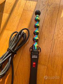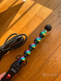 Vendo arricciacapelli professionale con bacchetta spiralata dal design arcobaleno, ideale per creare ricci definiti, onde strette e look particolari.