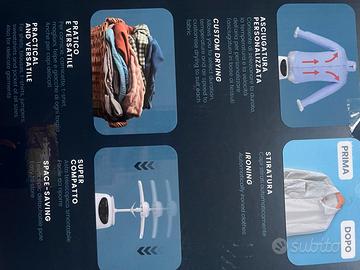 Stira e asciuga in pochi minuti magliette, polo, camicie gilet e tutto quello che è indossabile dalla vita in su.