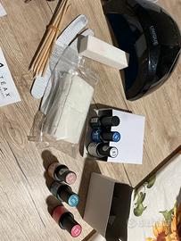Asciuga unghie professionale, con vari accessori;smalti spugne bastoncini limette.