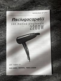 Potente asciugacapelli con manico pieghevole 2200w