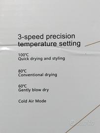 Asciugacapelli con tre velocità di getto Tre temperature Diffusore calamitato e supporto da parete Nuovo