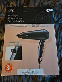 Asciugacapelli Cien con doppia velocità,tasto centrale pulsante di aria fredda,convogliatore con doppio flusso di aria,piccole dimensioni ma getto d'aria e temperatura proprio come un asciugacapelli professionale,cavo lunghezza 1,80 ma,gancio appendibile