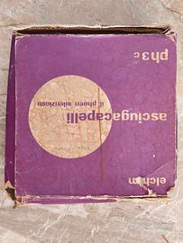 Vendo al miglior offerente asciugacapelli Elchim anni ’50 con confezione originale. L’asciugacapelli è funzionante ma essendo un prodotto d’epoca non è conforme alle nuove normative sui dispositivi elettrici (non dispone di messa a terra). In vendita solo per collezionismo. Non si effettuano spedizioni. Visto e piaciuto.