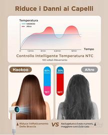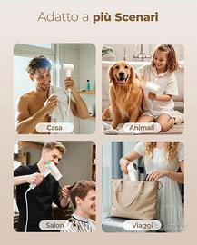Asciugacapelli ionico professionale con accessori. - Asciugacapelli bianco. - Accessorio concentratore. - Diffusore.