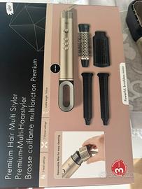 Asciugacapelli multifunzionale, un multi-styler per capelli di ultima generazione, rappresenta un'innovativa soluzione per la cura dei capelli. Dotato di un potente motore brushless, offre prestazioni elevate e silenziosità. L'apparecchio è fornito di diverse testine intercambiabili, consentendo di asciugare, lisciare, arricciare e dare volume ai capelli con estrema facilità. Completo di scatola originale e borsa da viaggio, è stato utilizzato una sola volta per verificare il corretto funzionamento. Presenta un piccolo graffio impercettibile, che viene comunicato per trasparenza.