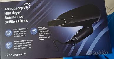 Manico pieghevole, ideale per i viaggi. 3 livelli di temperatura Potenza 1800-2200 W colpo d'aria fredda