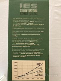 GAMMA PIU' I.E.S. PHON ASCIUGACAPELLI PROFESSIONALE A RISPARMIO ENERGETICO ECO-SOSTENIBILE SALONE PARRUCCHIERE BARBIERE. ASCIUGACAPELLI PROFESSIONALE. ENERGY SAVING I.E.S. Light è l’unico asciugacapelli che offre la stessa potenza di asciugatura di un qualsiasi fon professionale da 2200W, ma con un abbattimento del consumo energetico consumando solo 1450W. Grazie all’energy saving system in un anno di impiego è possibile risparmiare circa il 34% di energia, ammortizzando nell’arco di un paio di mesi, il costo del prodotto.