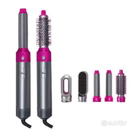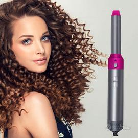 5 accessori inclusi. Nella confezione troverete: 1 x Corpo principale phon, 1 x anello ovale soffiante,1 x spazzola piatta riscaldante e lisciante,1 x Spazzola rotonda riscaldante per capelli ricci, 2 x ferri rotondi riscaldanti con sistema soffiaggio interno per creare boccoli perfetti.
