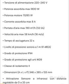 Asciugacapelli automatico da parete con attivazione a infrarossi, struttura robusta in ABS antiurto trattato anti-UV. Caratteristiche e misure in foto. Nuovo. Mai aperto. Pagato oltre 180,00 Ritiro a mano