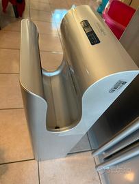 Questo dispositivo è un asciugamani elettrico a lama d'aria Fumagalli modello SPEEDMAX. Funzione: Asciugatura rapida delle mani tramite getti d'aria ad alta velocità. Caratteristiche: Dispone di una funzione di sterilizzazione integrata e indicatori LED per lo stato di funzionamento ("power", "sterilization", "check"). Tecnologia: Utilizza una tecnologia a lama d'aria per minimizzare i tempi di asciugatura rispetto ai modelli tradizionali.