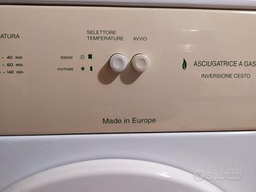 Causa trasloco vendo asciugatrice a gas: può essere collegata all'impianto (io la tenevo in cucina sotto la caldaia) oppure alimentata con una bombola. Può essere collocata anche all'esterno, su balconi o in cortile. Molto delicata nell'asciugatura, può essere utilizzata con qualsiasi capo, anche quelli che in etichetta riportano "non asciugare in asciugatrice". Presenta una piccola parte in plastica dell'interno oblò rotta, ma non influisce in alcun modo sull'uso. Comprende griglia per asciugare le scarpe e una confezione di foglietti antistatici.