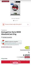 ASCIUGATRICE A POMPA DI CALORE SERIE 8000 TR8G83GW 8.0 KG CLASSE ENERGETICA C.