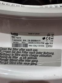 Asciugatrice ottime condizioni Marca Beko Mod DRX 722 W Colore bianco EcoGentle technology 7 kg Classe A++ 900W Possibilità di ritiro
