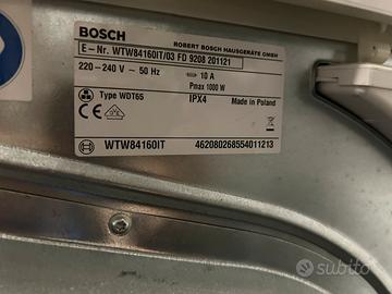 Asciugatrice Bosch WTW84160IT/03 Asciugatrice da riparare, cinghia usurata e gocciola acqua dalle lamelle di condensazione, probabilmente è piena di polvere sul sensore anti allagamento, io l’ho pulito più volte nel corso degli anni, ci vuole manualità. Vendo quindi come NON funzionante o come parti di ricambio