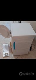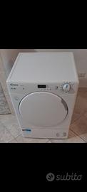 Offro asciugatrice Candy modello CSE C8LF-S da 8 Kg, libera installazione a condensazione (ha la vaschetta per l'acqua). Programmi adatti a tutti i tessuti, partenza normale o ritardata 3, 6 o 9 ore, asciugatura regolabile su varie intensità, da pronto stiro ad extra asciutto. Ha anche il programma certificato Woolmark per la lana e un ciclo rapido da 45 minuti per asciugare 1 kg di panni. Facile da usare, può essere gestita anche da smartphone scaricando la relativa app. L'acqua che viene raccolta nella vaschetta è pura e si può usare anche per stirare. Perfette condizioni sia estetiche che funzionali, usata molto poco e con diligenza da proprietario attento all'igiene. Misure in cm: larghezza 59,6 - profondità 60,7 - altezza 85,0 Manuale d'uso incluso. Ritiro a vostro carico in zona Ottavia - Via della Palmarola (zona Roma nord ovest - Casal del Marmo).