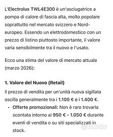 Asciugatrice a Pompa di calore Electrolux Fascia alta Classe energetica A++ Ottime condizioni Perfettamente funzionante No perdi tempo, no trattabile Prezzo vantaggioso Svendo per trasloco