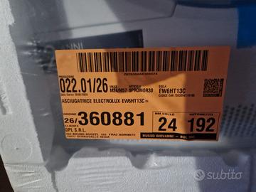 Asciugatrice Electrolux nuova ancora imballata con 2 anni di garanzia. Trasporto facile eprchè raggiungibile direttamente con la macchina.