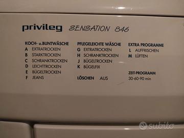causa trasloco vendo asciugatrice 6 kg perfettamente funzionante. i programmi sono scritti in tedesco. è dotata di due filtri per la pulizia e cassettino per la raccolta dell'acqua di condensa. ritiro e trasporto a carico dell'acquirente
