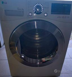 Vendo causa inutilizzo asciugatrice Lg Eco hybrid 9kg funzionante. da valutare sostituzione filtro pelucchi perché un po' rovinato ma funziona anche così, graffi sull oblò che non inficiano sul funzionamento ma solo sull estetica.