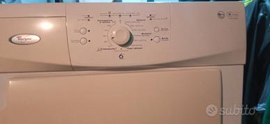 asciugatrice Whirlpool classe B misura standard funzionante ma con manopola programma fuori uso ( impostata su asciugatura tempo circa 2 ore)completa di tutto, filtro ok , condensatore ok, con vasc. scarico condensa sul fondo. impilabile su lavatrice non spedisco ,solo ritiro a mano.