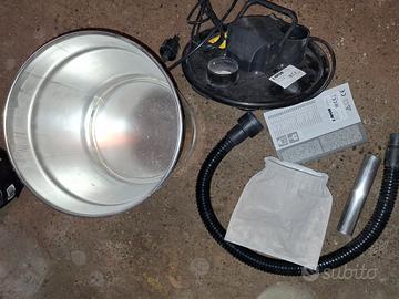 Aspiracenere elettrico LAVOR Ashley 110, made in Italy. Ideale per stufe a pellet, camini a legna, stufe a carbone e barbecue. Ha anche la funzione soffiante (utile per foglie o per ravvivare le braci). Specifiche: 800W (max 1000W), fusto in acciaio da 18 litri, tubo flessibile in metallo. Completo di tutto: scatola originale, manuale di istruzioni, filtro in panno originale, tubo e beccuccio. Usato, in buone condizioni generali. Qualche normale segno d'uso. Prezzo: 20€ — no spedizione, solo ritiro in zona Corbetta (MI).