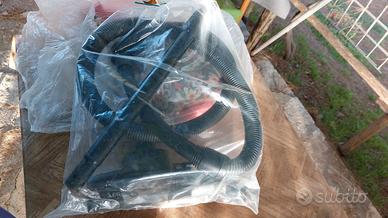 Aspirapolvere AEG molto potente in perfette condizioni con ruote e ricco di accessori con un contenitore troller per conservarlo e per il trasporto.