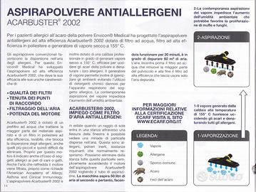 L'aspirapolvere Acarbuster 2002 con caldaia professionale unisce la forza igienizzante del vapore all'energia dell'aspirazione, elimina l'aereodispersione degli allergeni grazie al suo doppio sistema di filtraggio.