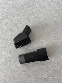 Scopa elettrica senza sacco con accessori, ovvero un beccuccio per fessure e una spazzolina per tessuti. Manico pieghevole, avvolgi cavo e aspira briciole incorporato.