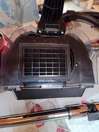 potente e silenzioso,con serbatoio facilmente estraibile da 2,5 litri motore ciclonico 700 w di assorbimento con lunghezza filo 5 metri,pulsante automatico per la rientranza del filo,fa anche da batti tappeto .
