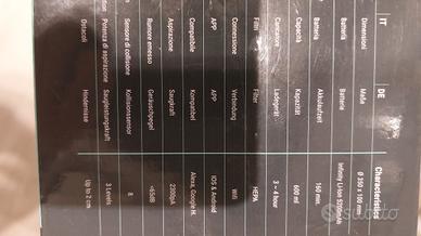 Autonomia 120 min idonei a circa 150 mq. connessione wirless e app della ikhos con creazione automatica della mappa. Aspirapolvere e lavapavimenti con serbatoio da 1.5lt. prodotto come nuovo. caratteristiche in foto e su web
