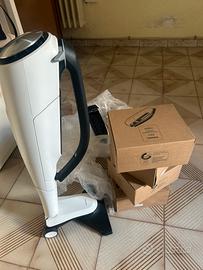 Aspirapolvere a batteria e in dotazione anche hna batteria aggiuntiva , un set di quattro scatole com sacchetti di riciclo all interno