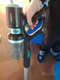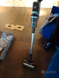 Aspirapolvere senza fili usato pochissimo con ancora la sua confezione originale e tutti gli accessori del caso. Appendibile al muro