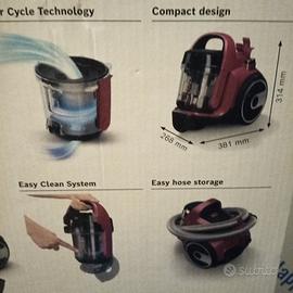 Aspirapolvere Bosch, senza sacchetto, tutti i pezzi sono facilmente lavabili. Comprato a ottobre, ho ancora lo scontrino per eventuale riparazione in garanzia che posso allegare. Ho fatto le foto per le specifiche tecniche.