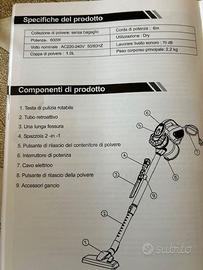 Aspirapolvere Insé 600 con sistema filtrazione ciclonica. Per le specifiche vedi foto