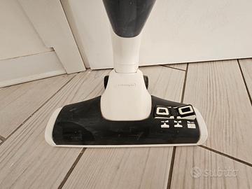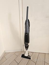 Scopa elettrica con filo e tecnologia ciclonica, senza sacco.Ha una potenza massima di 450 W e un sistema di filtrazione HEPA ad alta efficienza che trattiene il 99,98% delle particelle di polvere.Il serbatoio della polvere ha una capacità di 1 litro e il sistema "Easy Clean" permette uno svuotamento facile e pulito.nclude una spazzola "Parquet Care" specifica per pavimenti delicati come il parquet e superfici dure, ma non è particolarmente adatta per tappeti e moquette.Leggera ed ergonomica, con un'impugnatura comoda e uno snodo che facilita la pulizia sotto i mobili.È stata usata in passato per le pulizie occasionali di una casa al mare.