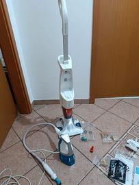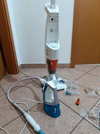 L'aspirapolvere a vapore lava e igienizza contemporaneamente . Ha il vaporizzatore che si stacca erogando un getto di vapore. Sono inclusi gli accessori.