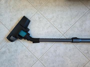 Vendo aspirapolvere portatile usato, in buone condizioni, pulito e perfettamente funzionante. Abbiamo acquistato un aspirapolvere nuovo e quindi non ne abbiamo più bisogno. Viene fornito completo di imballaggio e accessori. È senza sacco, facile da svuotare e pulire. Al momento lo teniamo in garage. Sarebbe fantastico se potesse essere riutilizzato. Non spediamo, solo ritiro e pagamento al momento del ritiro. Situato a Foligno (PG).