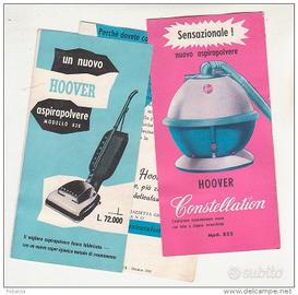 La mitica Hoover Constellation – Mod. 862 del 1957. Un pezzo di modernariato fine anni '50 e Design. L'aspirapolvere “Space Age” disegnata da Henry Dreyfuss ed ispirata alla corsa allo spazio di quegli anni. In metallo, versione con finiture rosa. Ti segue negli spostamenti sollevandosi sul suo cuscino di aria. Funzionante. Un pezzo di Design! Una pazzia di regalo di nozze, fatto nel '58. Un sogno per le casalinghe italiane, visto solo sulla stampa americana! Completa di alcuni sacchetti di raccolta dedicati, nuovi.